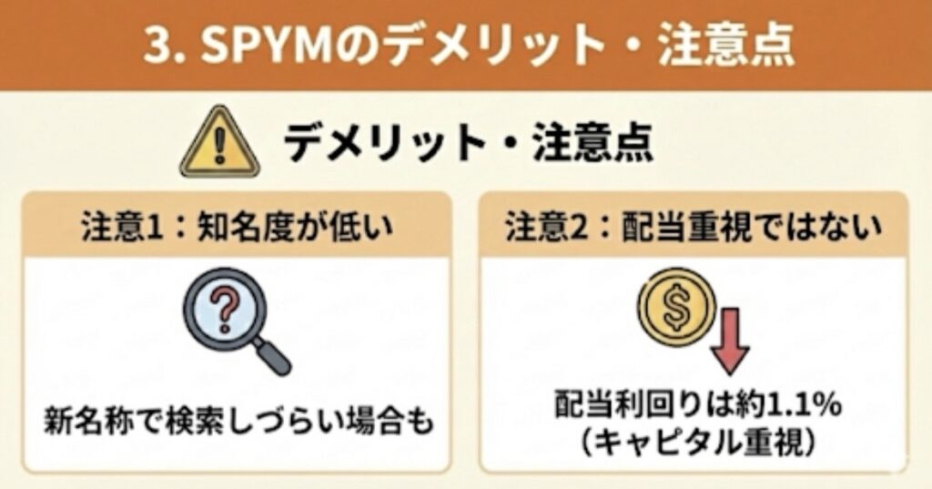 完璧に見えるSPYMですが、知っておくべき注意点もあります。
